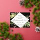 Esta elegante y moderna tarjeta postal de Relieve metalizado de oro tropical "Bridesmaids Tea" es una manera fácil de invitar a amigos y familiares a celebrar a sus damas de honor. El "té de las damas de honor" junto con el nombre, la fecha y la ubicación de la novia aparecen en la parte delantera, en el color de Relieve metalizado de su elección. El texto está resaltado por un marco estropeado. Las hojas tropicales, el follaje y los helechos alcanzan su pico por detrás del marco sobre un fondo negro. Las salpicaduras de Relieve metalizado dorado le dan un toque sofisticado de luminosidad al diseño. La parte trasera de la postal tiene los detalles de la ducha de té de novia en negro.
