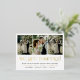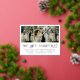 Tarjeta de invitación elegante con tipografía en pan de oro para la fiesta de bodas personalizada con tres fotos de la boda y su nuevo nombre compartido en pan de oro. Tarjeta postal de invitación para la celebración de bodas después de la boda en negro y dorado para una recepción de bodas informal pero elegante con tres fotos y detalles en pan de oro sobre un fondo oscuro. Invitación a la fiesta de escapada en forma de postal con texto en pan de oro y sus fotos de bodas.