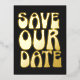 Invitación Postal Con Relieve Metalizado Oro Negro Retro Años 70 Boda Moderno Chic