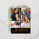 Añada sus 4 fotos favoritas en la parte delantera de estas postales de invitación de fiesta de graduación que incluyen clases de y GRADUATE en moda con letras de Relieve metalizado rosa de oro, plata o oro en un fondo negro (se puede cambiar el color). Una foto de tamaño completo en la parte posterior está debajo de los detalles de su fiesta y área de dirección de entrega. **CONSEJO: Utilice todas las fotos horizontales con usted en el centro para obtener los mejores resultados de diseño. El servicio de diseño en vivo puede ayudarle con el diseño de su diseño o colores si es necesario. COINCIDIENDO con los artículos de nuestra tienda.