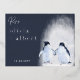 Invitación Postal Con Relieve Metalizado Penguins Silver Winter Elegant Modern Wedding RSVP