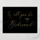 Invitación Postal Con Relieve Metalizado Propuesta de la dama de honor de oro y escritura n