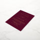Invitación Postal Con Relieve Metalizado Querida Borgoña y Boda de oro