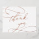 Esta romántica tarjeta de agradecimiento de boda rosa Relieve metalizado oro es perfecta para un boda simple. El moderno diseño clásico presenta vistosos remolinos y florituras con una magnífica y elegante tipografía con letras a mano en lujoso Relieve metalizado de oro rosa. La parte posterior está en blanco para que puedas escribir a mano un mensaje personal. Estas tarjetas se pueden usar para un boda, una ducha de novia o cualquier evento especial.