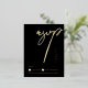 Invitación Postal Con Relieve Metalizado Simple Black Gold Script Wedding RSVP Gold