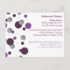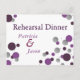 Invitación a la cena de ensayo con puntos morados y plateados. Tenga en cuenta que esta es una postal que se puede poner en otro sobre, pero este diseño en particular no viene con sobres, lo que lo hace una elección económica. Sin embargo, hay una versión con un sobre.