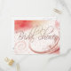 Tonos rosa, crema y melocotón pastel con corazones y "ducha de novia" en escritura. Postal perfecta para las invitaciones a la ducha de novia.