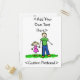 Padre e hija se toman de la mano. La camisa del padre decía "papá" y la camisa de la hija decía "yo". Las figuras tienen el pelo rubio. Puede personalizar este producto con su propio texto.