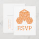 ¿Conocer a tu futuro cónyuge y todo lo que te llevó a tu compromiso se siente como si tuvieras una veintena de años? Si es así, este diseño geek de postales de respuesta Boda D20 Dice de moda es perfecto para usted! Con una D20 más grande y dos dados más pequeños que la acompañan, esta elegante pero nerd postal de RSVP en naranja es fácil de personalizar con los detalles de su boda. Haga clic en "Personalizar" para encontrar más opciones de personalización.