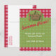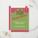 ¿Tocando un picnic esta primavera o verano? A tus invitados les encantará esta invitación con tarjeta postal y los pondrán en el ánimo de venir a unirte a ti. El diseño de esta invitación tiene un patrón de gingham rojo y blanco en el fondo, y una capa verde en el frente con una canasta y cuchillo y tenedor alrededor de ella. ¡También es muy bueno para las vacaciones y las barbacoas!