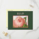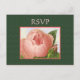 Postales del personalizado RSVP con una simple rosa rosada y rosebudo de arte botánico vintage sobre un falso fondo de tela verde. Personalizar Esto para cambiar fuentes, colores, tamaño y más, incluso guardar su diseño para más adelante.