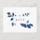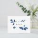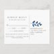 Postal RSVP botánica de color azul y blanco cobalto con opciones de comida o entrada. Diseñado para coincidir con nuestra colección Pressed Botanical boda en Índigo.