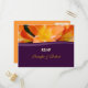 Postal rsvp morado y naranja. El color del texto y las fuentes se pueden cambiar fácilmente haciendo clic en el botón "Personalizar" del naranja.