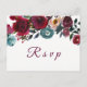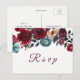 Invitación Postal RSVP de Boda Floral de Vino Rojo Borgoña