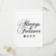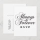 Postales de respuesta Boda de moda y moda siempre y para siempre con un hermoso diseño de texto de tipografía escrita a mano en blanco y negro. Esta sencilla y elegante tarjeta RSVP le da la tónica de un boda elegante y romántico y es fácil de personalizar con los detalles de su boda. Haga clic en "Personalizar" para encontrar más opciones de personalización. El color de fondo puede cambiarse a cualquier color que desee.