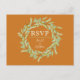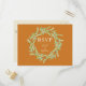 Elegante color de agua verde en la parte delantera con un fondo naranja ocre y los detalles de la tarjeta RSVP en el color crema de la parte posterior de esta postal. Personalice su respuesta por fecha, aceptación o declinación y con posibles opciones de comida. COINCIDIENDO con los artículos de nuestra tienda.