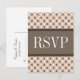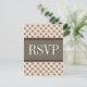 RSVP Postcard de moda y moda Fancy Lattice Wedding con un elegante círculo y un patrón de rombo sobre un vibrante fondo de melocotón con un amplio borde marrón de dos tonos. Esta elegante tarjeta RSVP es perfecta para un boda moderno. Fácil de personalizar, simplemente agregue los detalles de su boda en los campos de texto proporcionados. Haga clic en "Personalizar" para encontrar más opciones de personalización.