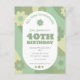 Los tonos verde sabio dan un toque moderno a este bonito diseño retro. ¡Envía a tu hijo florido interior mientras celebras el hito que es tu cuadragésimo cumpleaños! Trae una estética vintage a tu evento con este diseño funky. Personalízalo con tu nombre y todos los detalles del evento: "Es hora de celebrar. (Nombre): 40 cumpleaños" (Nota: si te gusta este diseño, ¡puedes personalizar para cualquier edad!)