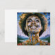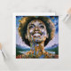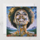 "Alma dorada, cielos infinitos". Una mujer afromoderna radiante rodeada de detalles dorados y cósmicos simboliza fuerza y trascendencia espiritual. Mezclando elementos abstractos y surrealistas, esta pieza exuda inspiración y positividad, con la sonrisa de la mujer representando esperanza, y fuerza interior para un mañana más brillante y unido.