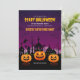 Prepárate para una noche espantosa con este espeluznante diseño de Halloween morado con brillantes lámparas jack-o’, casas embrujadas, murciélagos, brujas, gatos negros y cruces espeluznantes de cementerio. El atrevido texto "Scary Halloween" y "Ghostly Gatherings Await" lo hace perfecto para invitaciones a fiestas, volantes de eventos o impresiones festivas de temporada. Con su vibrante pero lúdica vibra, esta obra de arte captura la verdadera esencia de las celebraciones del 31 de octubre.