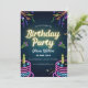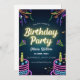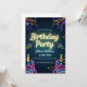 ¡Prepárate para celebrar con estilo con este impresionante poster de la fiesta de cumpleaños de neón blanco y negro!