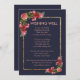 Invitación Pozo de los Deseos Azul Marino Rosado Floral Dorad