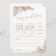 Abraza el ambiente otoñal con nuestra encantadora tarjeta de predicciones de camión de calabaza boho para bebé. Esta encantadora tarjeta es perfecta para agregar diversión a tu baby shower de otoño. Los invitados pueden hacer predicciones sobre la llegada del bebé mientras disfrutan de la belleza rústica de este diseño. Con un camión de calabaza rosa lindo y la frase "Una pequeña calabaza en camino", establece el tono para una celebración cálida y acogedora. Prepárate para recopilar dulces predicciones y crear recuerdos duraderos mientras esperas la llegada de tu pequeño.