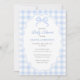 Invitación Preppy Doodle Frame Blue Gingham & Bow Baby Shower