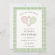 Cute Preppy Pink and green pickleball paddle and ball Birthday Party invitation with green gingham border.