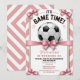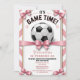 Invitación Preppy Pink Bow Girl Soccer Game Time Birthday