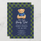 Invitación Preppy Teddy Bearly Wait Checkboard Baby Shower