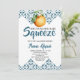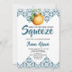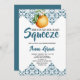 Invitación a divertirse con la ducha de novia mediterránea de Squeeze Lemon, invitamos a los huéspedes a disfrutar de un hermoso día de amor y limones con esta impresionante invitación a la ducha de novia "Main Squeeze", con limones amarillos brillantes emparejados con clásicos patrones azules mediterráneos. Este diseño combina a la perfección encanto y elegancia y aporta la calidez de la costa de Amalfi o de las islas griegas a su celebración nupcial. Personalizable completo con el nombre de la futura novia, fecha, hora, lugar y detalles del RSVP, esta invitación marca el tono de una ducha elegante e inolvidable, ideal para eventos de verano, brunches de patio o temas de destino.