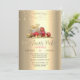 Una elegante invitación a una fiesta navideña que presenta una bola de Navidad, regalos y luces de cadena en un fondo dorado. Estas hermosas invitaciones de Navidad son perfectas para invitaciones a cenas de Navidad, invitaciones de intercambio de regalos navideños, recaudaciones de fondos de Navidad, invitaciones a bailes navideños y otros eventos celebrados durante el mes de diciembre. Simplemente use los campos de la plantilla para agregar la información de su evento.