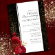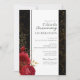 Floral gótico rojo, salpicaduras de rojo y negro, invitaciones para 50 aniversario de bodas con flores doradas. Hojas florales doradas falsas. Fuente script que destaca con fuente de nombre serif fácil de leer. Fácil de ajustar para tus propias necesidades de boda.