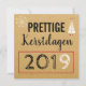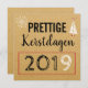 Moderne kerstkaart met bruine achtergrond. Lijkt een beetje op karton. In zwarte letters "Prettige Kerstdagen". Leuk voor kerst 2019, maar je kan het jaartal ook aanpassen naar 2020 of 2021. Adbeeldingen van een moderne sneeuwvlok en kerstboom met cadeautjes en een vogeltje als piek.