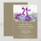 Invitación Pretty Blue and Purple Peony 21st Birthday