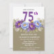 Ideal for honoring a special woman turning seventy-five, this floral birthday invitation blends classic charm with modern style, making it perfect for garden parties, elegant dinners, or upscale gatherings. The delicate botanical details and rich colors create a timeless look that guests will love.
