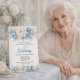 Celebrate a remarkable milestone with this elegant 100th birthday invitation featuring soft blue magnolia and peony florals with delicate greenery. Perfect for honoring a beloved mother, grandmother, or friend, this timeless design adds grace and beauty to any centennial celebration. Easily personalize the name, date, time, and location to create a meaningful keepsake for family and guests. Available as a convenient digital download for easy sharing or professionally printed on premium paper for a stunning presentation. Ideal for formal birthday parties, garden celebrations, and elegant milestone gatherings.