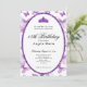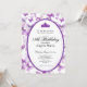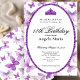This elegant purple and white 18th birthday invitation has butterflies, a tiara crown, and a purple glitter oval with a personalizable template to create your own message. The invitation template is customizable in the listing editor and is also available as a digital download that's printable after you personalize it. It's a classic style that's perfect for a fun family event to celebrate a milestone birthday.