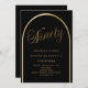 Una elegante invitación de cumpleaños número 90. Un fondo negro con un arco dorado en la parte delantera.