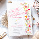 ¡Hay una flor silvestre en camino! Bonito Flores silvestres primavera floridas ducha de bebé con bonito pintada a mano y naranja brillante, flores rosas y amarillas ilustracion acuarela con un moderno y elegante tipo de letra, con vegetación bohemia. Perfecto para primavera, verano al aire libre jardín fiesta de ducha de bebé.