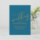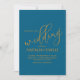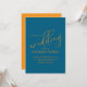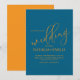 Invitaciones de boda con tema simple con escritura naranja y colores de verano o primavera azules