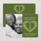 Peridoto alrededor de un corazón foto Invitación de primer aniversario de boda. Hermosas piedras preciosas de estilo peridoto en forma de corazón impresas en gráficos primera invitación de aniversario de boda personalizable con los detalles de su fiesta de aniversario de boda y foto de la feliz pareja. Gráficos y diseño original de piedras preciosas verdes de estilo peridoto por www.mylittleeden.com y www.mylittleedenweddings.com