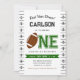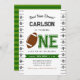 Invitación a la fiesta de primer cumpleaños de un niño de fútbol de primer año.