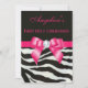 La primera comunión santa invita. Las rayas blancos y negros de encargo elegantes y las rosas fuertes de la cebra imprimieron las 1ras invitaciones personalizadas arco de la comunión santa para los chicas con de la imagen de la cebra de la piel del modelo animal blanco y negro enrrollado de las rayas, linda, brillante, femenina los arcos impresos rosa fuerte impresa y las imágenes de las cintas y los diamantes digitales bonitos bling las joyas en un fondo negro con el texto cursivo de lujo de las rosas fuertes. Observe por favor: Todo invita en Zazzle tiene imágenes impresas del plano. Este con clase, de moda, maravilloso y atractivo, glitz y encanto invita se adornan/se imprimen en ambos lados. Invitaciones personalizadas hermosas, elegantes, de moda, modernas para la primera comunión santa. El texto, la fuente y el color de la fuente se pueden todos modificar para requisitos particulares para cubrir sus necesidades. Si usted necesita la ayuda que modifica su producto para requisitos particulares por favor éntreme en contacto con a través de mi tienda. Me placeré ayudar.