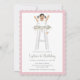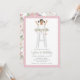 La invitación rosada para el primer cumpleaños incluye a una adorable bebé sentada en su trona y adornada con un bulto floral con letras "one". Personalizar que el bebé se parezca al chica de cumpleaños eligiendo el color del pelo y el tono de la piel. Las letras en el agrupamiento se pueden cambiar por el número de hechizo "dos".