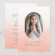 Una elección simple y elegante para la Primera Comunión Sagrada de un chica, este diseño distintivo de invitación presenta una plantilla de fotos ovalada en la parte delantera de la tarjeta con los detalles en una hermosa disposición en la parte posterior. El fondo de un gris oscuro en los corales pastel es de una suave acuarela que aporta un toque artístico a la vez sobrio y elegante. Una cruz de color coral coincidente está encima del texto que simboliza este sagrado rito religioso. Personalice la plantilla de la foto con la foto de su hija y el texto del evento. Estas invitaciones están disponibles en formato digital de descarga impresa y instantánea para su comodidad.