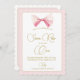 Una linda invitación para el primer cumpleaños. La proa acuarela es la característica principal de esta elegante invitación al cumpleaños. Cambie la información para su propia información y palabras. Bonito y rosa. Elija entre una gama de tipos de papel. Desde una amplia gama de diseños finos de Chessie.