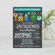 Adorable Chalkboard Monster Bash Primer cumpleaños invitación.