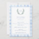 Una acuarela de gingham clásica con un escudo de laurel para un monograma inicial. Toda la redacción se puede cambiar para adaptarla a su evento.